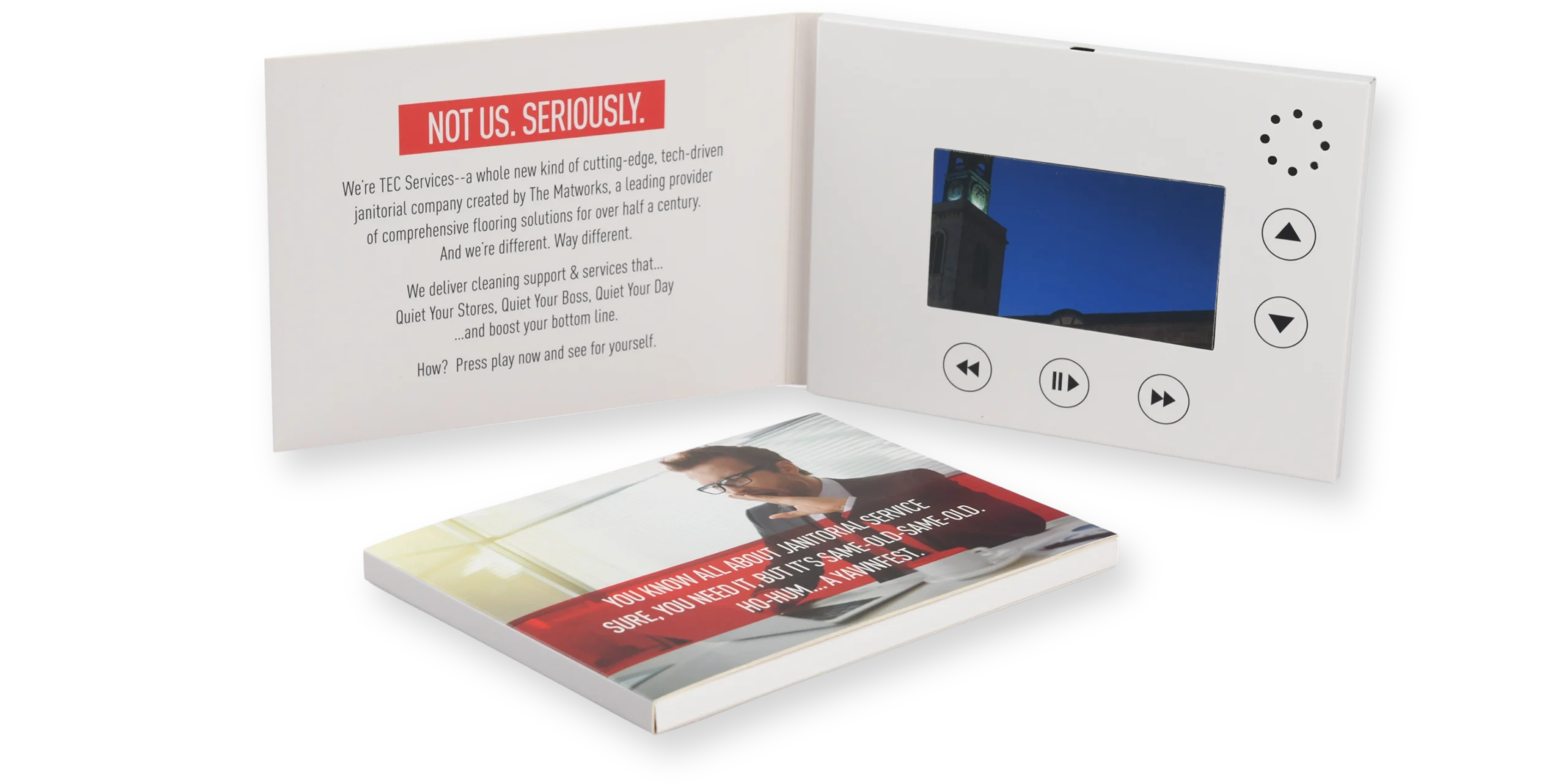 A video book is a premium multimedia brochure that integrates traditional printed pages with a built-in HD LCD screen and speaker system, enabling you to showcase eye-catching video content in a tangible, memorable format. It’s a powerful marketing tool designed to immediately capture attention and emotionally connect with your audience — perfect for product launches, brand promotions, corporate presentations, and new product campaigns. By combining the impact of video with the personal touch of a physical brochure, video books help increase engagement, improve message retention, and drive higher conversion rates.