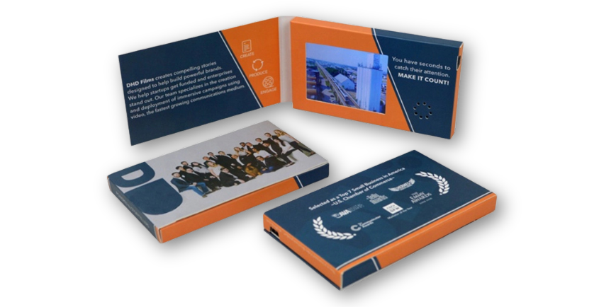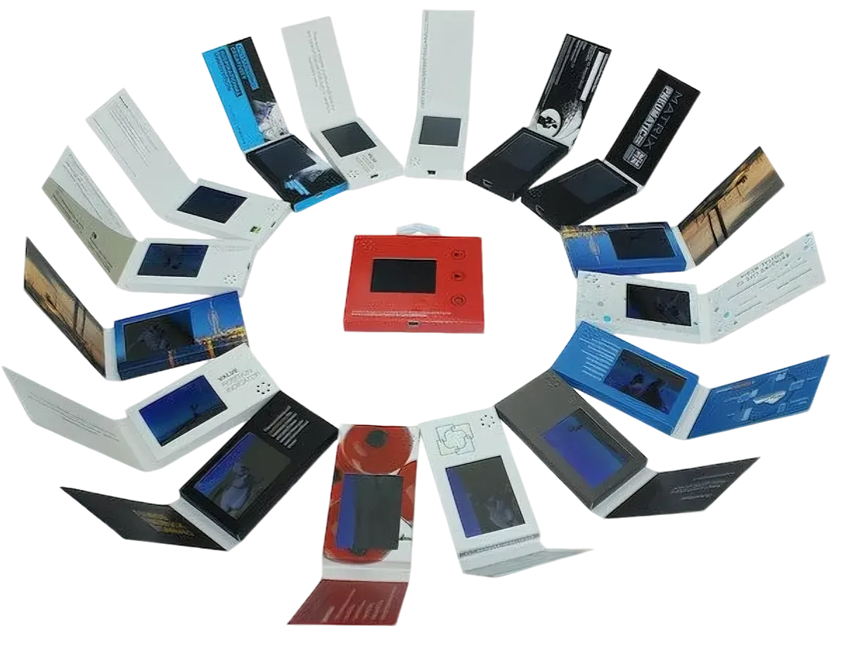 A Video Business Card is a small, portable booklet (usually credit-card-sized or slightly larger) that includes a built-in video screen, speaker, and USB-rechargeable battery. When opened, it automatically plays a video—typically introducing your business, showcasing products/services, or delivering a personal message.